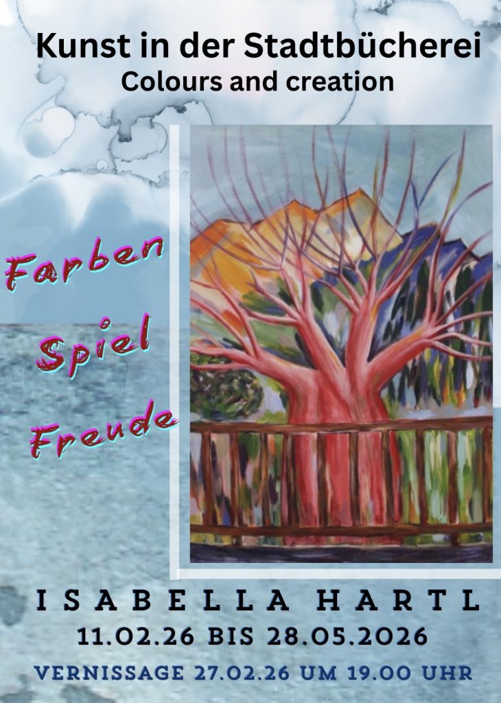 Einzelausstellung Stadtbücherei Moosburg “Farben Spiel Freude” Februar bis Mai 2026